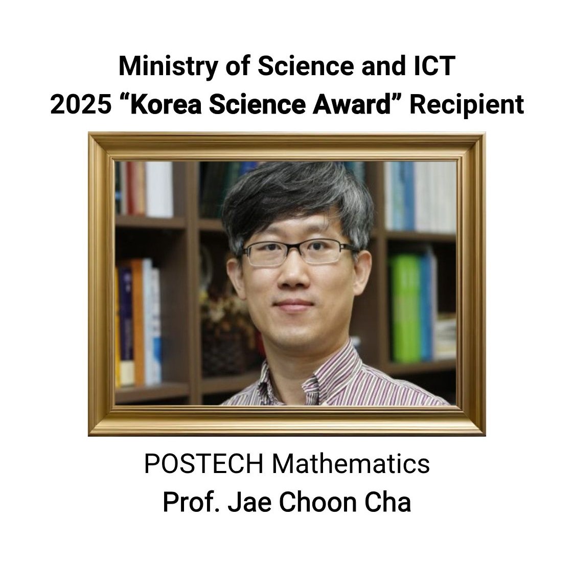 Professor Jae Choon Cha of the Department of Mathematics at POSTECH has been selected as a recipient of the 2025 Korea Science Award, one of the nation’s most prestigious honors for scientific achievement, presented by the Ministry of Science and ICT. The award ceremony was held on December 18 at the Korea Science and Technology Center, where Professor Cha received a Presidential Citation along with a research grant of 70 million KRW.