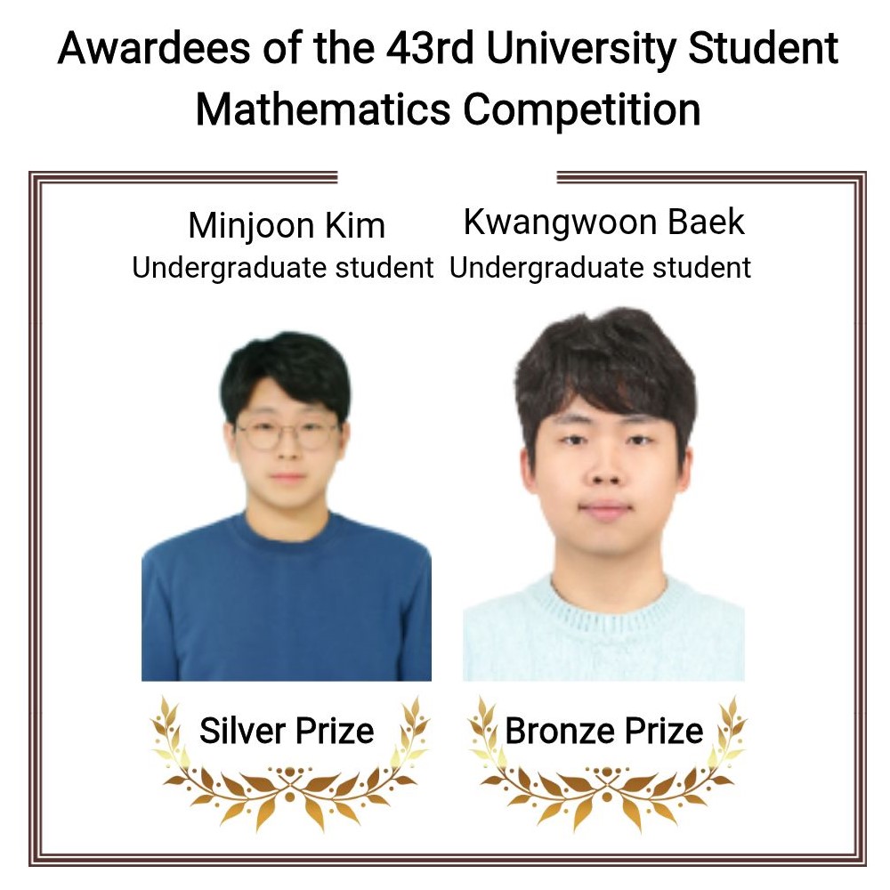 Awardees of the 43rd National Collegiate Mathematics Competition (Minjoon Kim and Kwangwoon Baek)